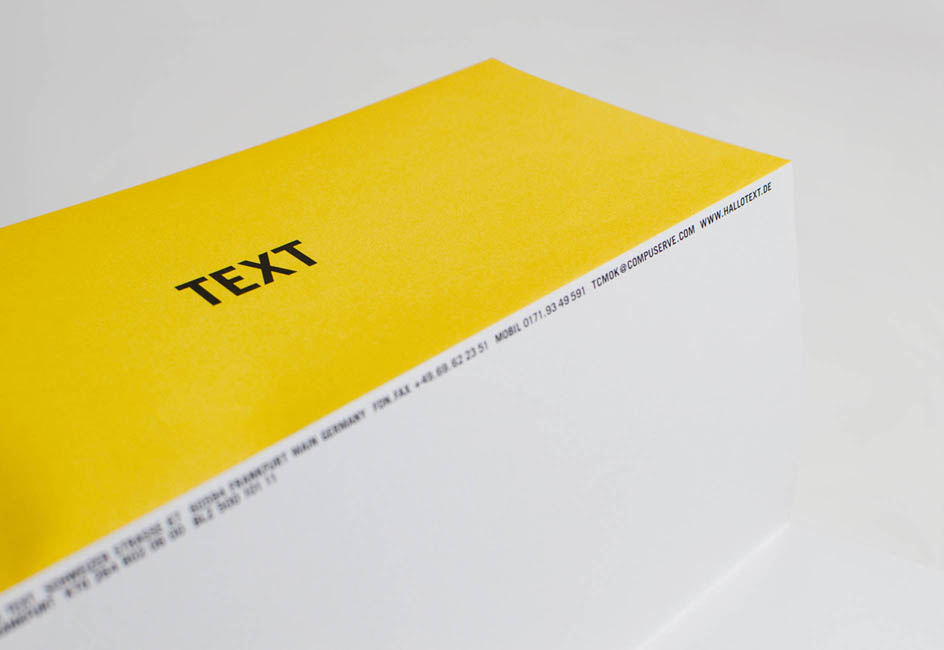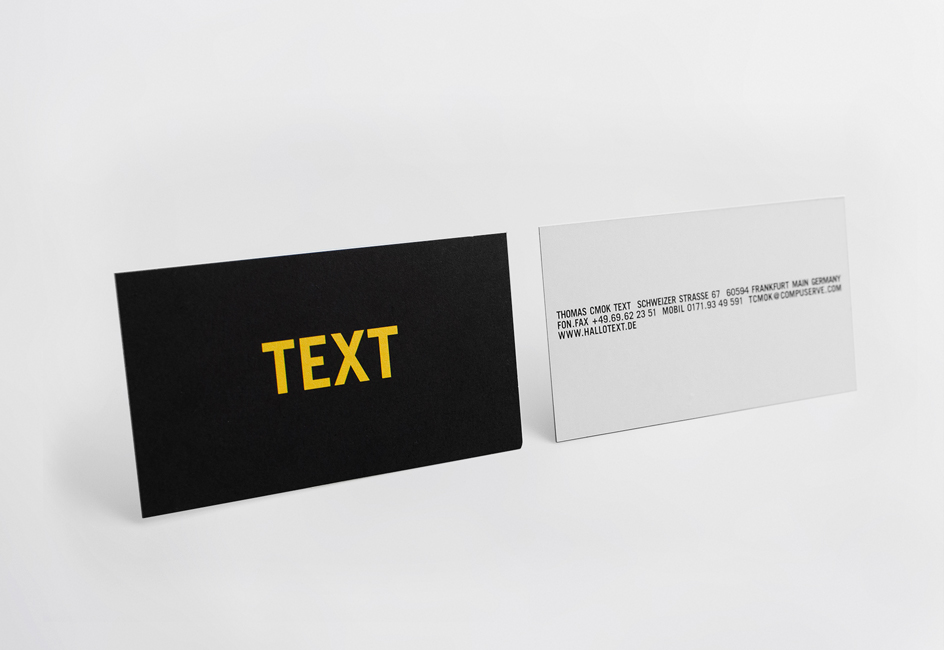 Hallo Text! Für den Texter Thomas Cmok sollte eine Geschäftsausstattung entwickelt werden, die an das Erscheinungsbild New Yorker Taxis erinnert. Here we go!