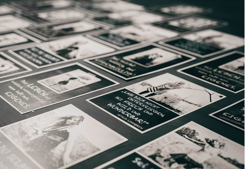 Entwicklung einer Postkartenserie, um eine neue Seminarreihe für Frauen zu promoten. Die Karten kamen so gut an, dass sie mittlerweile verkauft werden. Ein analog-virales Marketing, das sogar die Produktionskosten wieder einfährt!