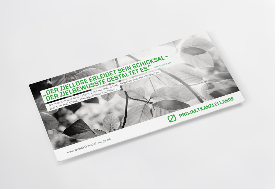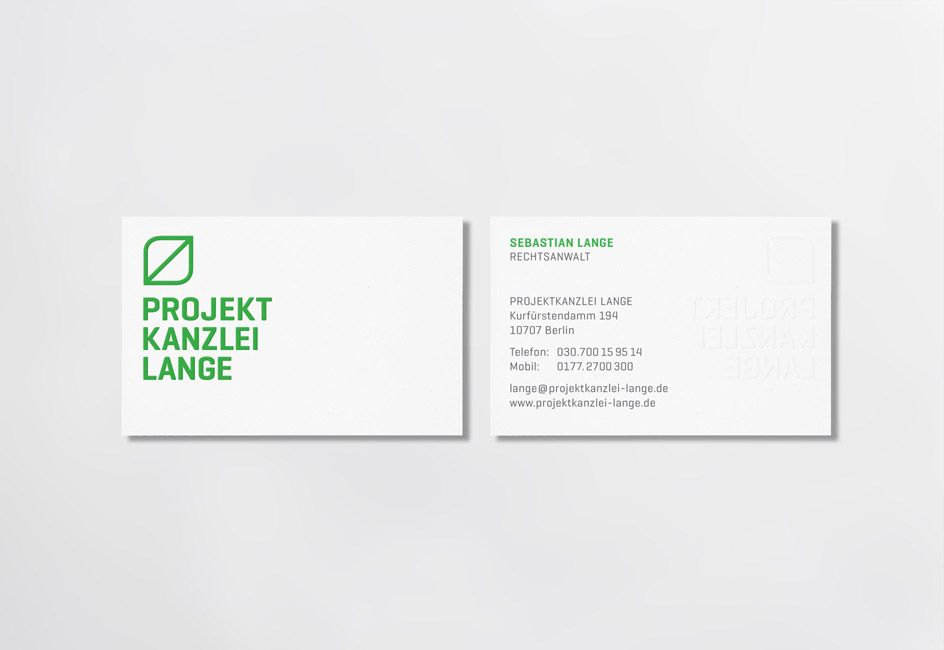 Corporate Design für eine Anwaltskanzlei, deren Schwerpunkt in der Vertragsgestaltung aus dem Bereich zukunftsorientierter Umweltprojekte liegt.
